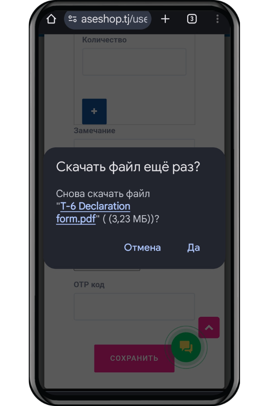 Нажмите на надпись "Загрузите шаблон таможенной декларации" и скачайте бланк декларации Т-6.